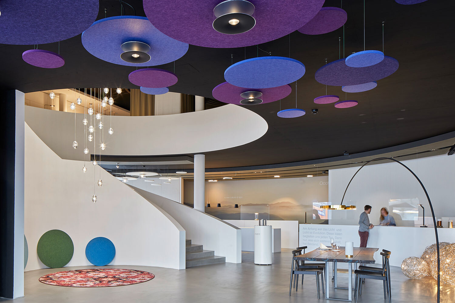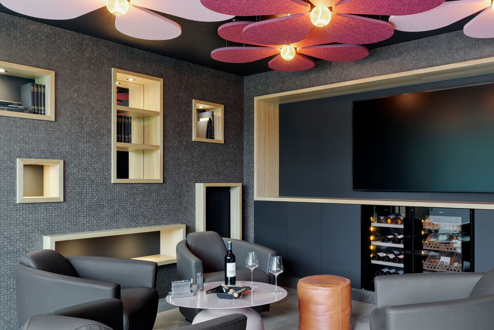 Ist es nicht möglich eine Decke komplett schallabsorbierend zu verkleiden oder als Ergänzung zu einer Funktionsdecke, können weitere Akustikelemente zum Zuge kommen und zum totalen Hingucker werden.