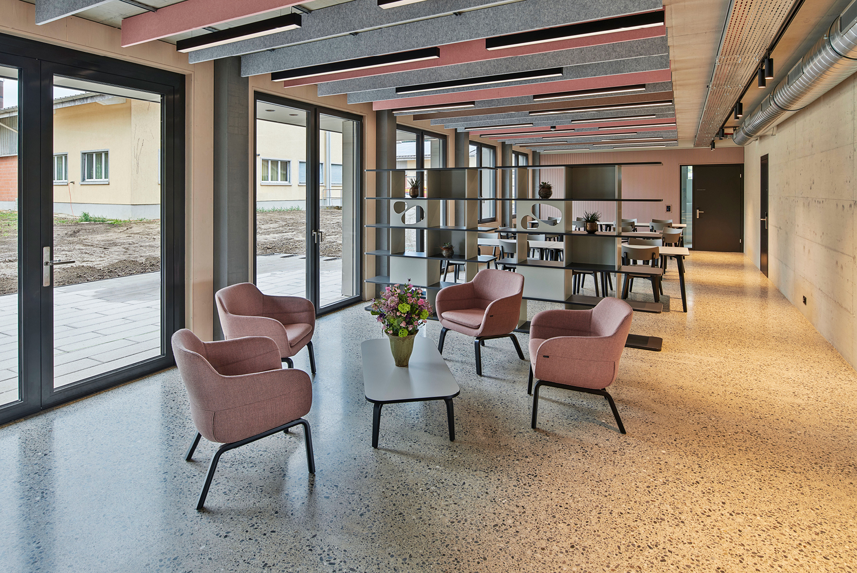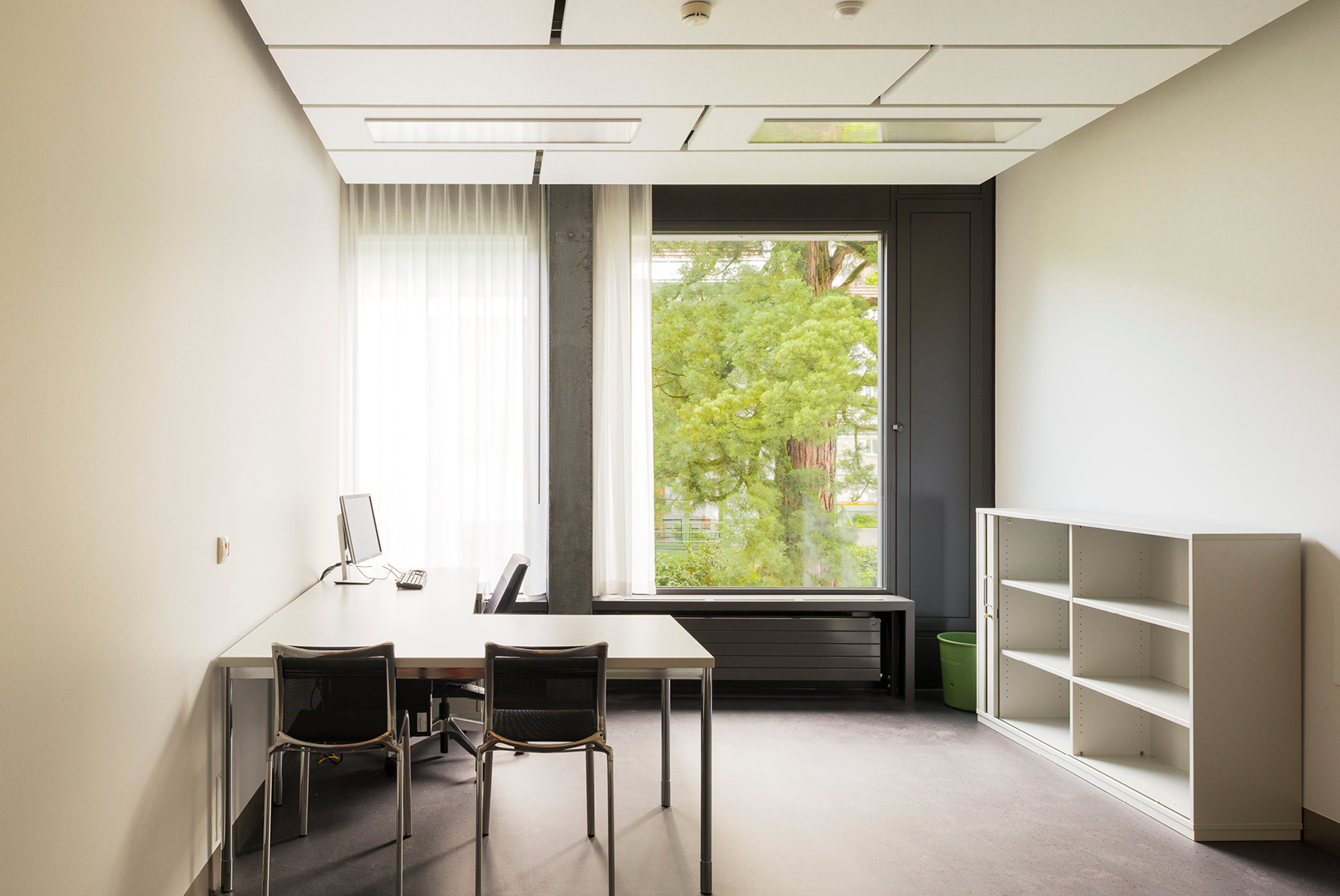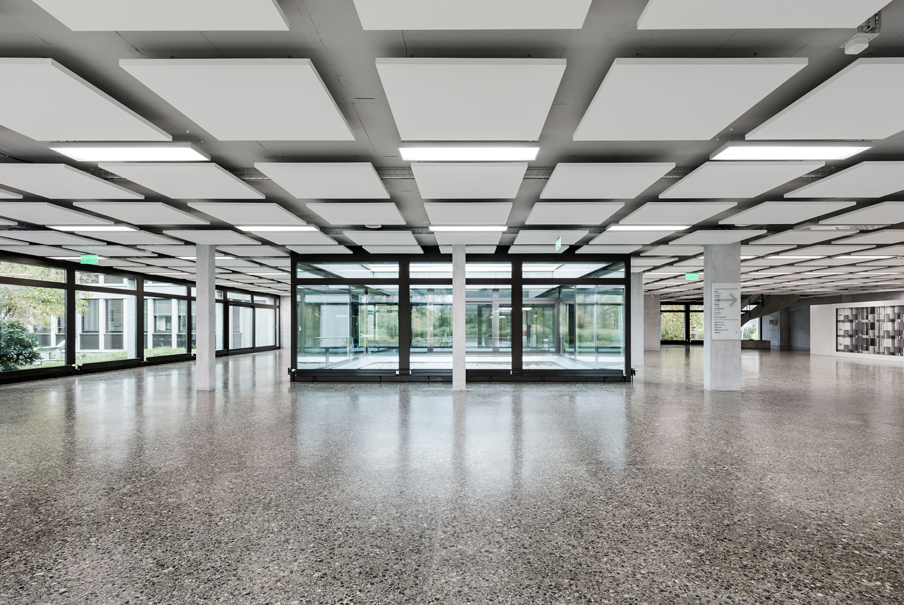 Schallabsorbierende Akustikdecke aus Mineralfaserplatten