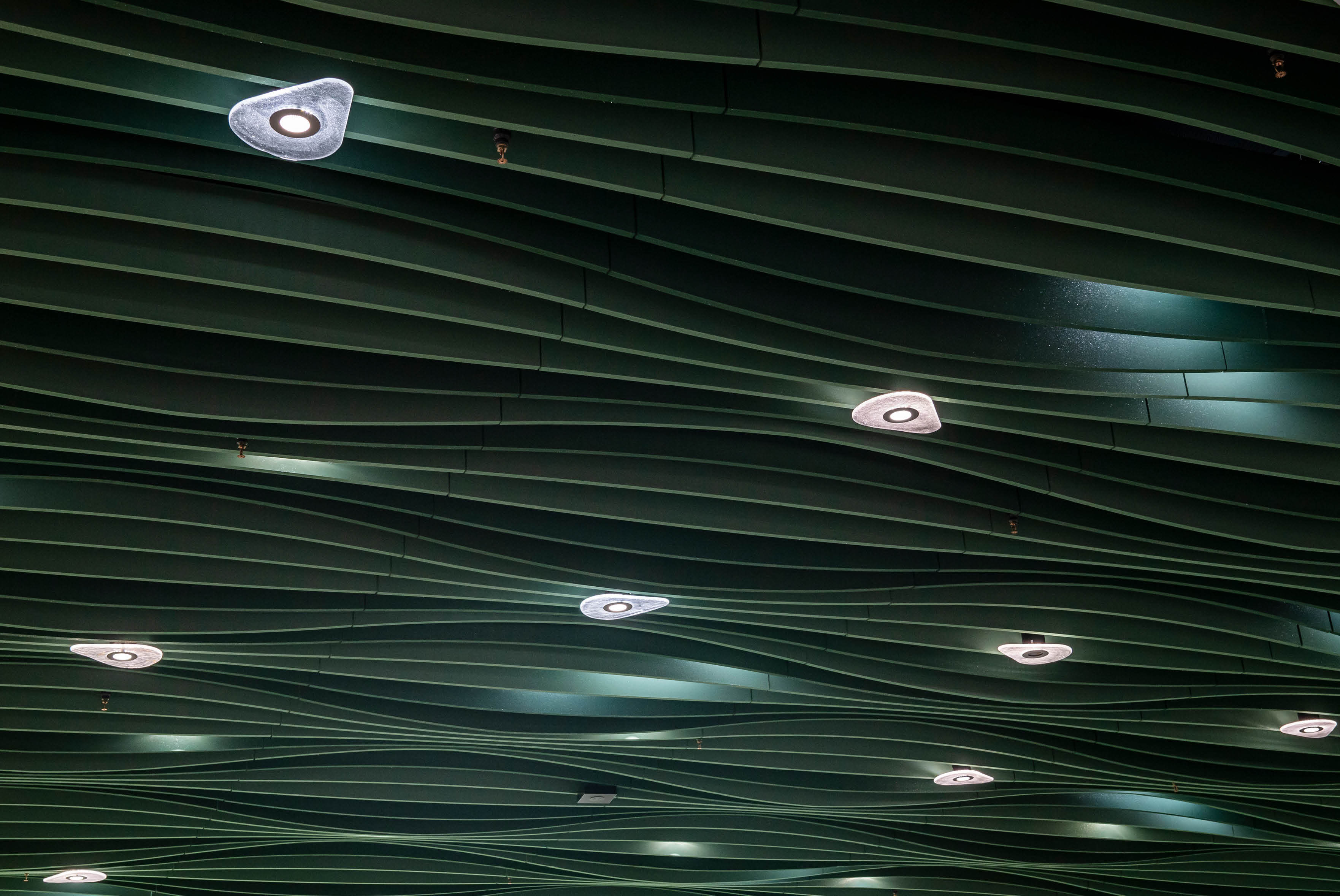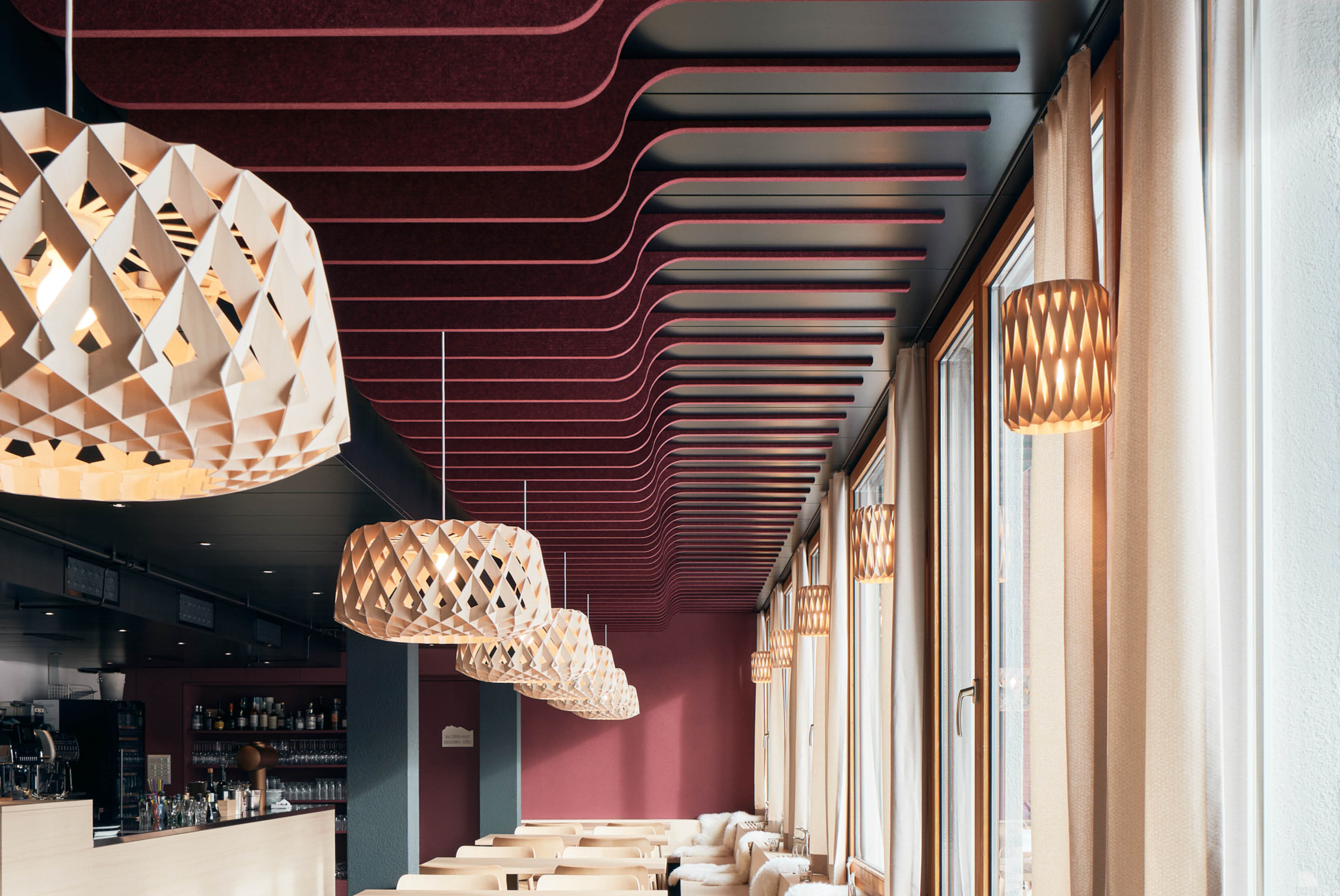 Schallabsorbierende Deckensegel aus Polyesterfaser