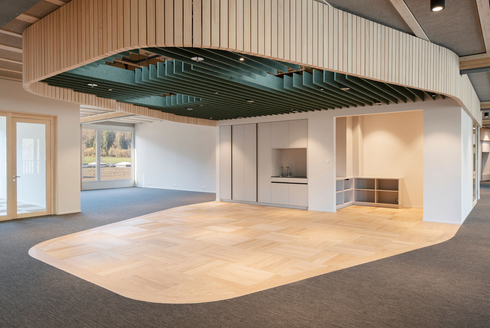 860 m² Holz- und Mineralfaserdecken342 m² Metalldecken